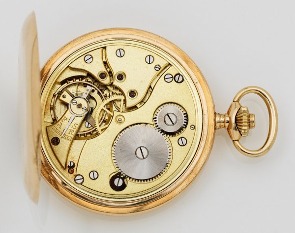 A gentleman's pocket watch, mechanical movement, in 14 k gold. Monogrammed.