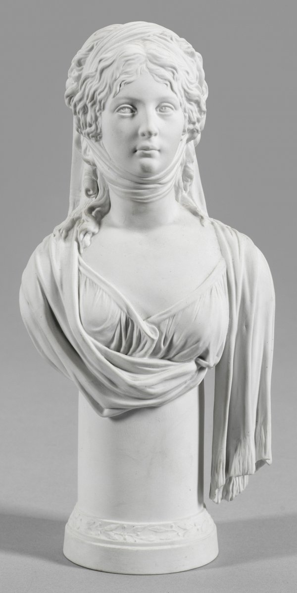 A biscuit porcelain bust of Luise, Queen of Prussia. Sceptre mark.
