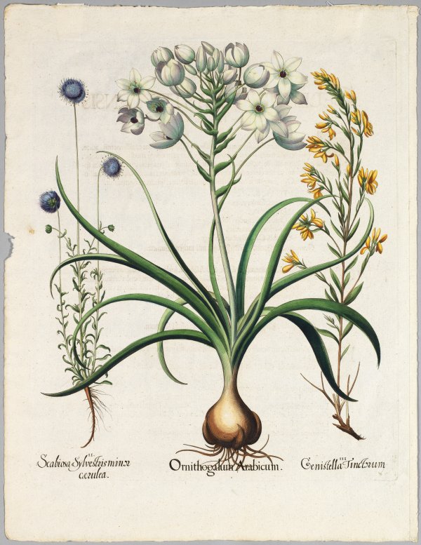 Three copper engraved botanical prints from the "Hortus Eystettensis" by Basilius Besler, published in Nuremberg, 1613- circa 1750. Latin text on the reverse. Two sheets hand-coloured. One sheet cut.