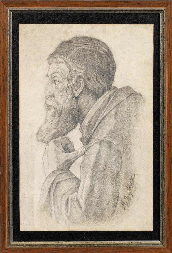 Trebacz, einer der bedeutenden jüdischen Maler in Polen um 1900, gehörte zugleich zur ersten Generation jüdischer Künstler, die menschliche Figuren schilderten. Er wurde als Chronist des jüdischen Lebens bekannt, seine Darstellungen betender Rabbiner und psychologischer Porträts von Juden brachten ihm die größte Popularität und Anerkennung ein. Bleistift/Papier. R. u. sign.; Ca. 26,5 cm x 17 cm. Rahmen.