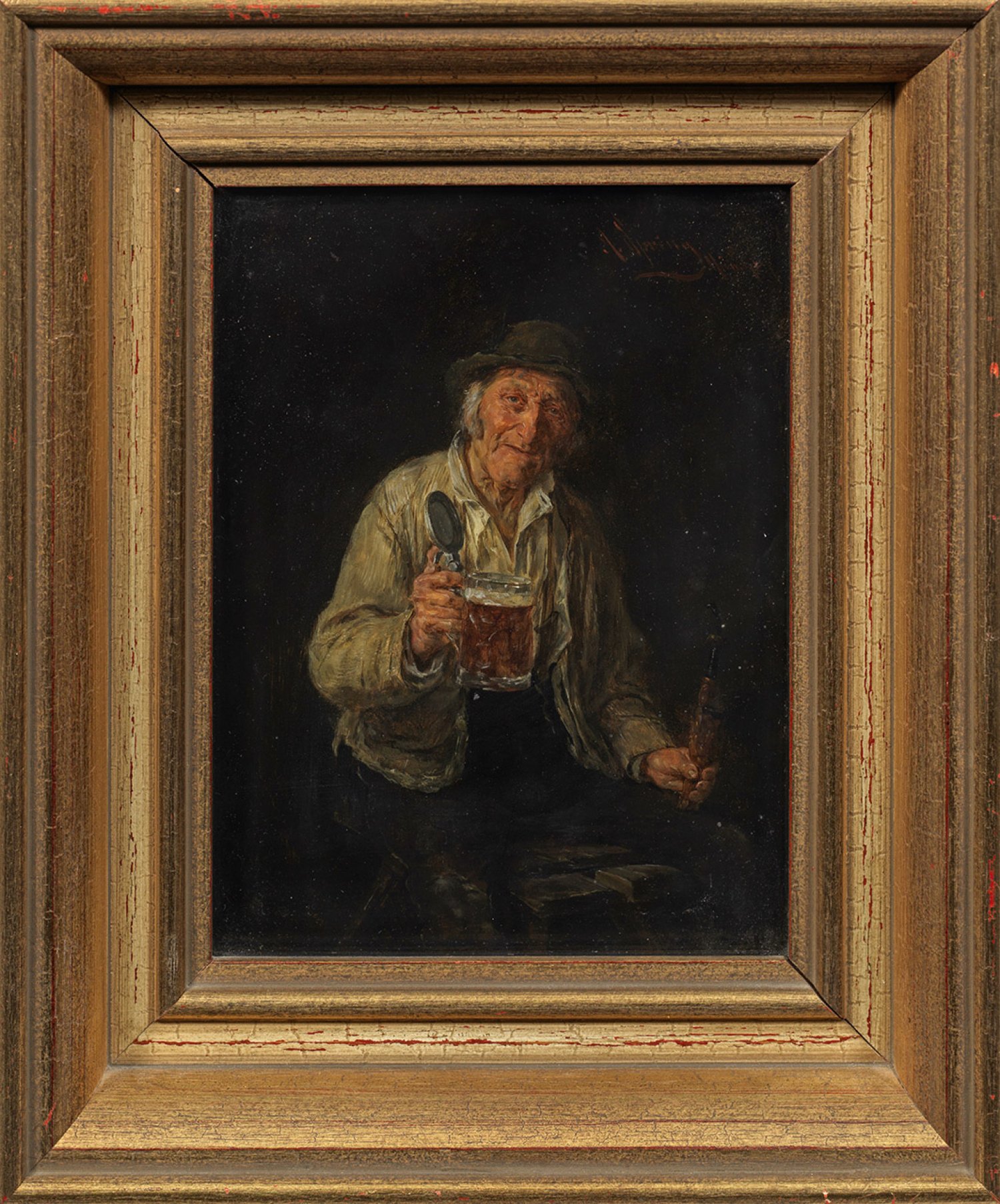 In fein lasierender Malerei ausgeführtes, für Spring in Motiv und Stil typisches Charakterbildnis. Spring studierte an den Akademien in St. Petersburg und München u. a. bei Wilhelm von Diez. Er beschickte die wichtigen Ausstellungen in Deutschland und Wien sowie die Weltausstellungen 1889 in Paris und 1893 in Chicago. Öl/Holztafel. R. o. sign. mit Ortsangabe München. 20,8 cm x 15,8 cm. Rahmen.