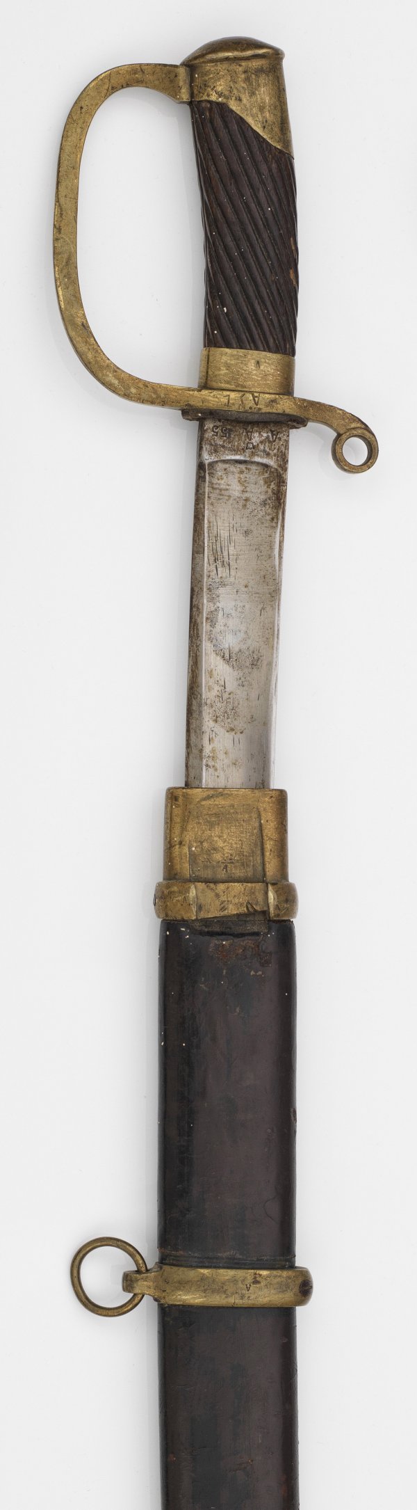 A Russian sabre with original scabbard. Age-related signs of use. Scabbard partly damaged. Manufacturer's mark and dated.
