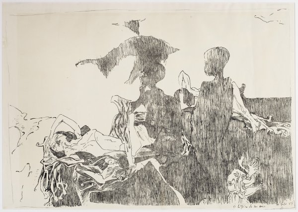 Lithographie/Papier, 1954. Im Stein sign., betitelt u. dat.; Frühes, in nur wenigen Exemplaren gedrucktes Blatt. Darstellung ca. 56,5 cm x 78,5 cm. Wvz. Vogel 24.
