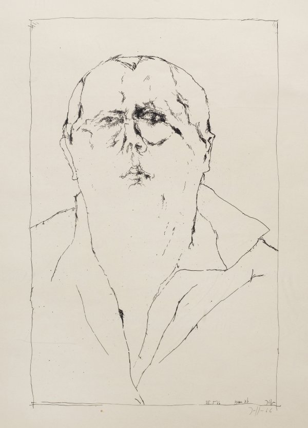 Federlithographie/Velin, 1966. Sign. u. dat.; Überdies im Stein sign., betitelt u. dat. "25(.)5(.)66". Selbstbildnis des Künstlers. Darstellung ca. 48,5 cm x 31,5 cm.