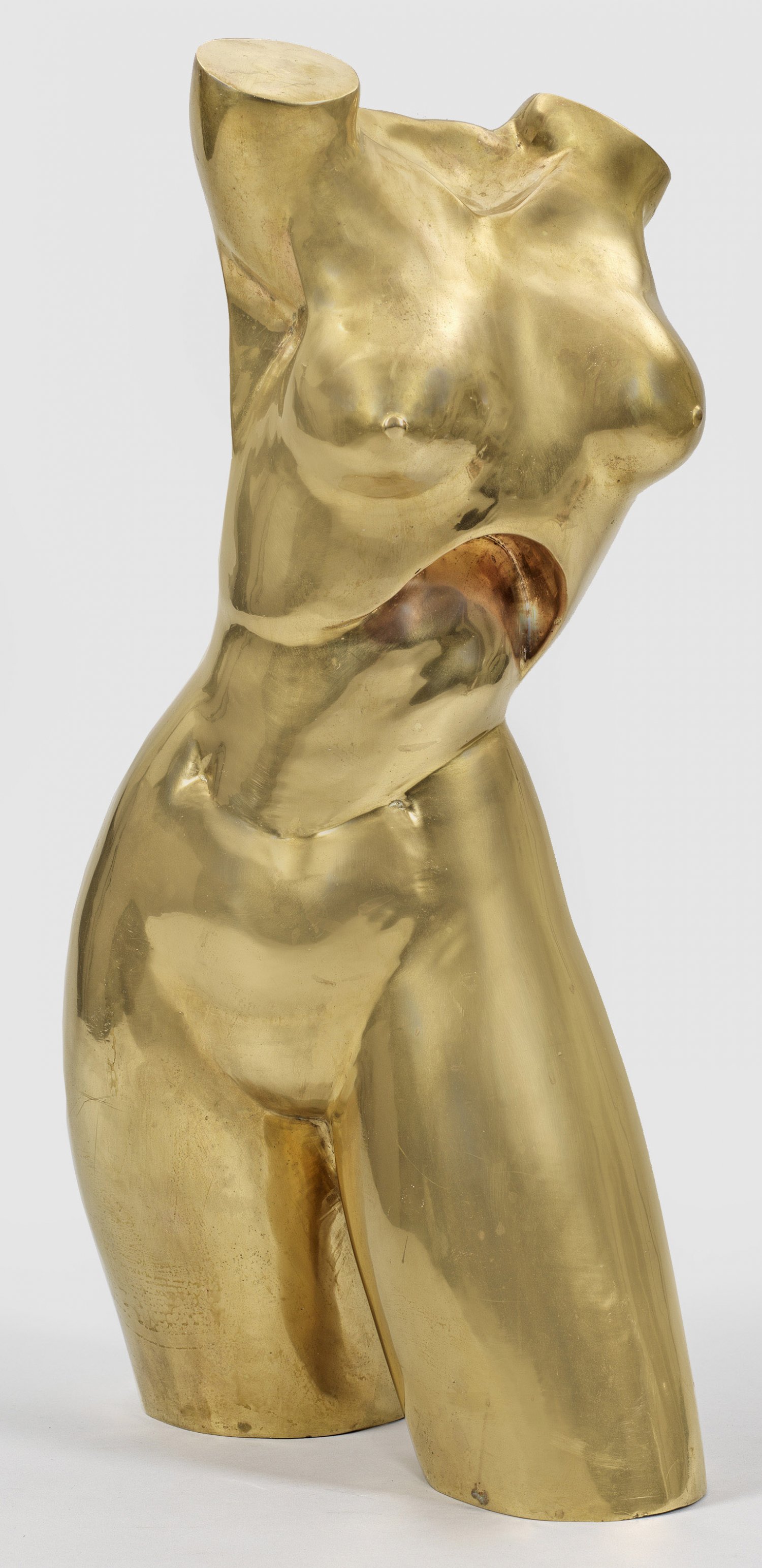 Bronze poliert. Große moderne Bronzeplastik des auf weibliche Aktfiguren Torsi und Tänzerinnen spezialisierten Bildhauers der durch die häufig polierten Oberflächen ein lebendiges Licht- und Schattenspiel hervorrief. Minim. Altersspuren. H. 65 cm