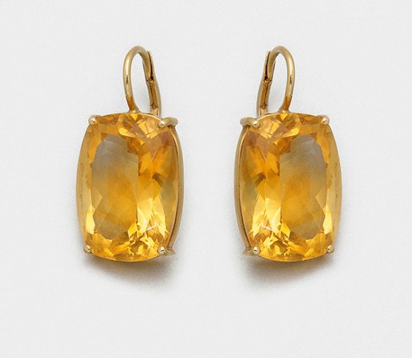A pair of earrings set with gold yellow citrines in 18 k gold.