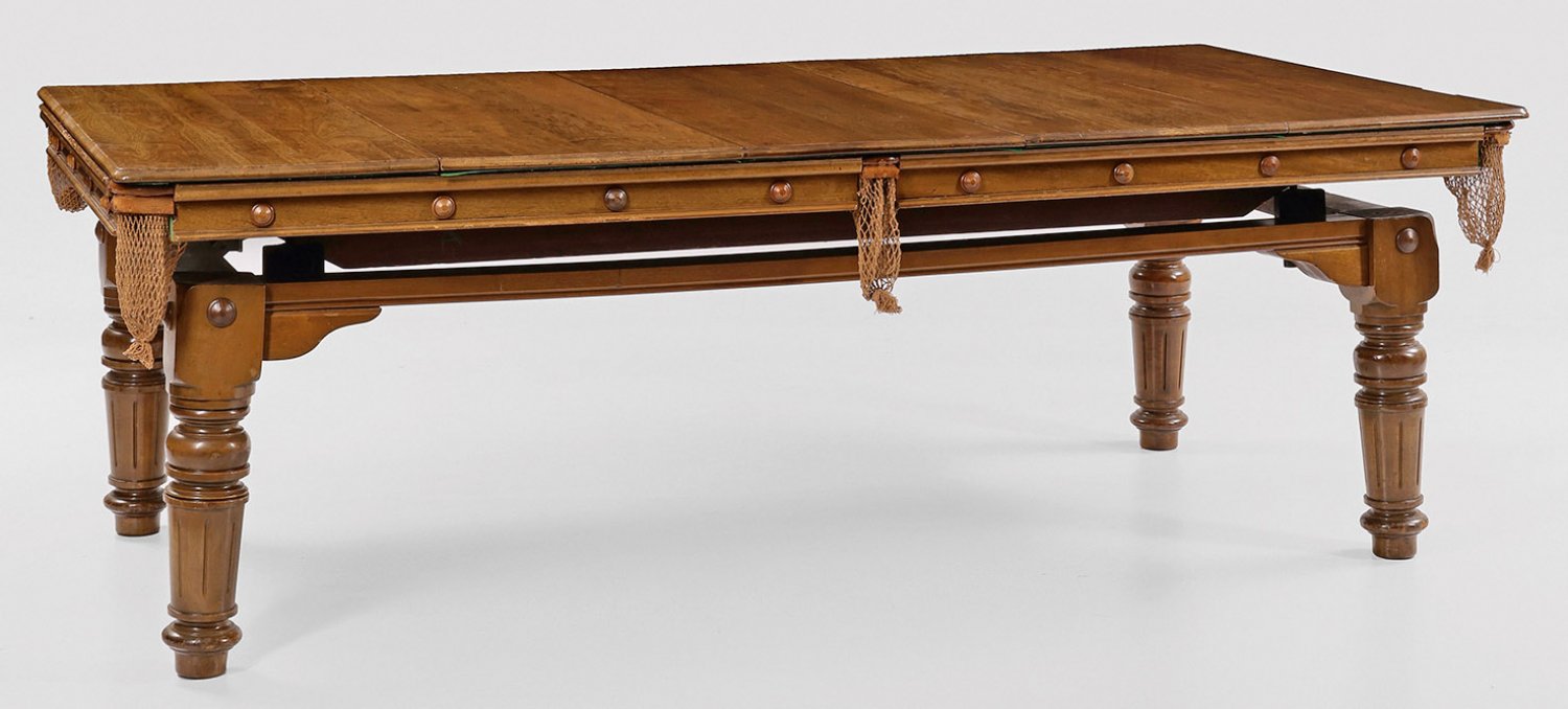 A walnut billard table by E. J. Riley.