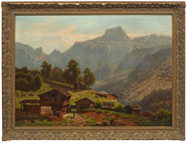Stimmungsvolles, motiv- und stiltypisches Werk Nockens, der an der heimischen Akademie in der Landschaftsklasse von Johann Wilhelm Schirmer studierte. Sein Hauptsujet waren Alpenlandschaften aus Bayern und Tirol, die er ab 1848 vielfach ausstellte. Öl/Lwd.; L. u. sign.; 66,5 cm x 95 cm. Rahmen.