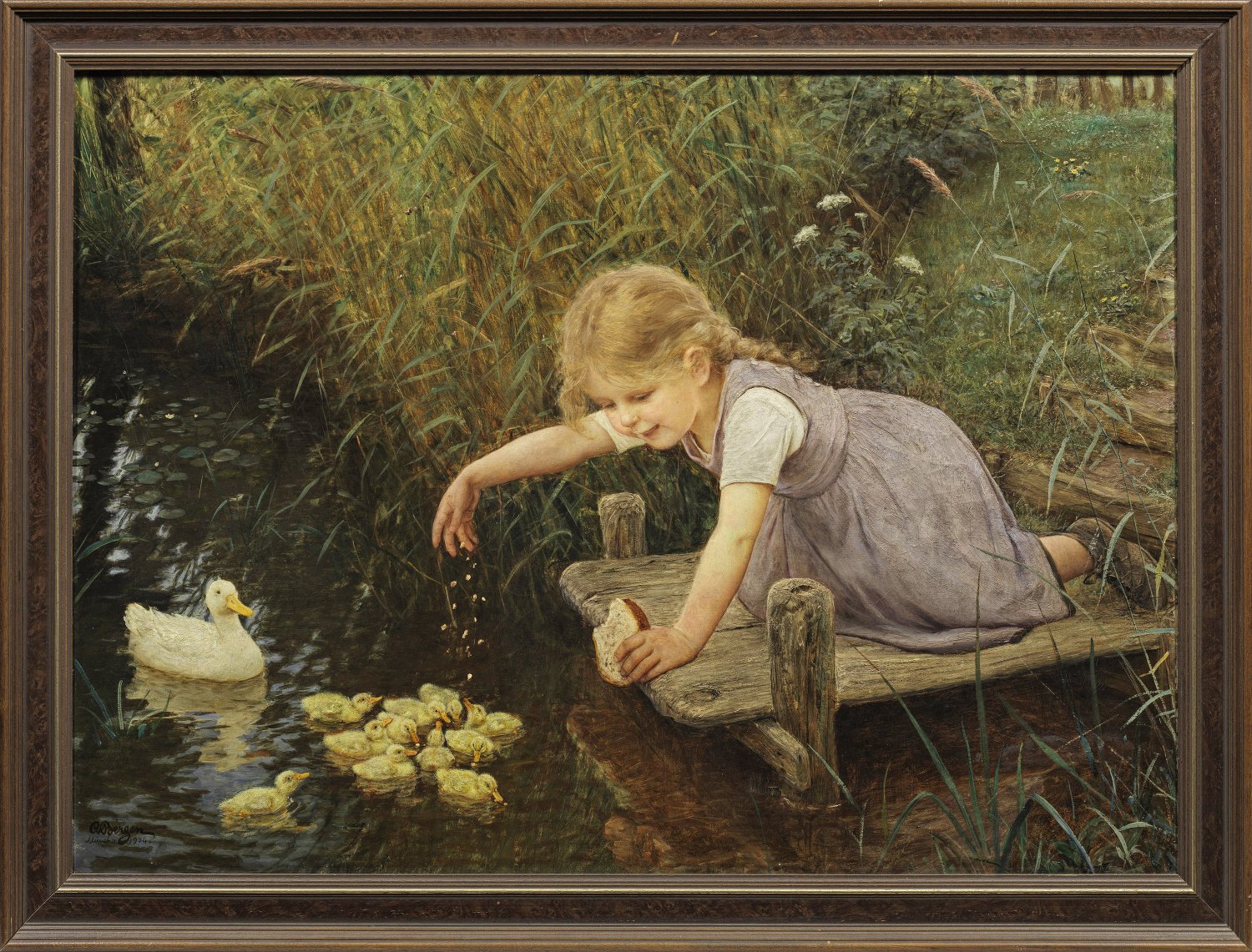 Der bekannte Genremaler studierte ab 1878 an der Akademie in München, wo er dauerhaft ansässig wurde. Ab 1889 stellte Carl von Bergen regelmäßig im Münchener Glaspalast aus, bekannt wurde er vor allem durch seine Kinderbildnisse und heiteren "Bachidyllen" mit Bauernkindern und Mägden. Öl/Lwd.; L. u. sign. u. dat. 1904 mit Ortsangabe München. 78 cm x 110 cm. Rahmen.