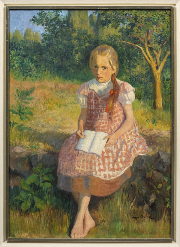 Impressionistisches, in hellem, teilw. leuchtendem Kolorit gemaltes Hauptwerk Oehmes. Der Künstler studierte an der Dresdener Kunstgewerbeschule und Akademie bei Leon Pohle und Friedrich Preller dem Jüngeren. Durch einen längeren Studienaufenthalt in Paris von 1908-1910 lernte er den französischen Impressionismus aus eigener Anschauung kennen. 1910 ging er nach München, wo er bis 1923 als künstlerischer Leiter der Abteilung für Aufglasurmalerei in der Nymphenburger Porzellanmanufaktur tätig war. Öl/Lwd.; R. u. sign.; 100 cm x 74,5 cm. Rahmen.