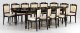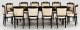 A large French black lacquered Napoleon III ebonized wood dining table and twelve chairs.