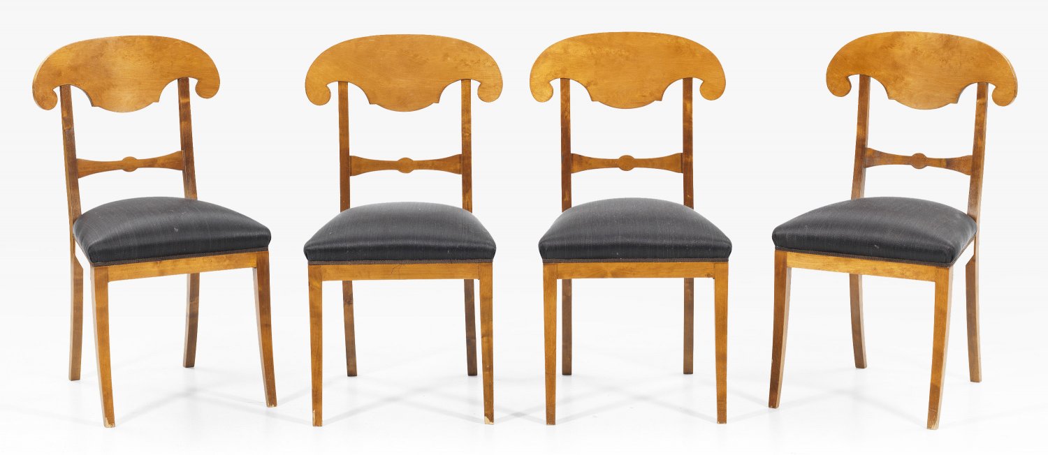 A set of four Scandinavian birchwood Biedermeier style chairs.