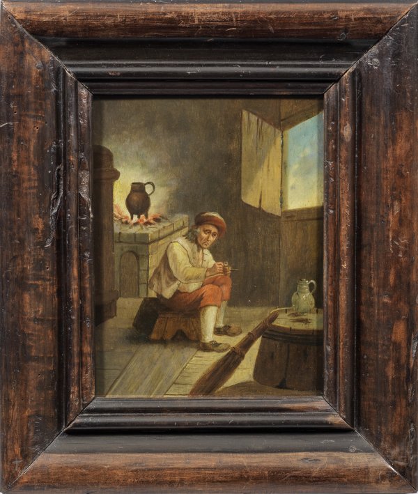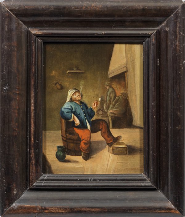 Gegenstücke. In der niederländischen bzw. flämischen Tradition von Adriaen van Ostade und Adriaen Brouwer gemalte Kabinettbilder. Öl/Holztafel. Ca. 26 cm x 18,5 cm. Wohl Original-Rahmen.