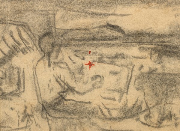 Charcoal and watercolour on paper. Estate stamp on the reverse.