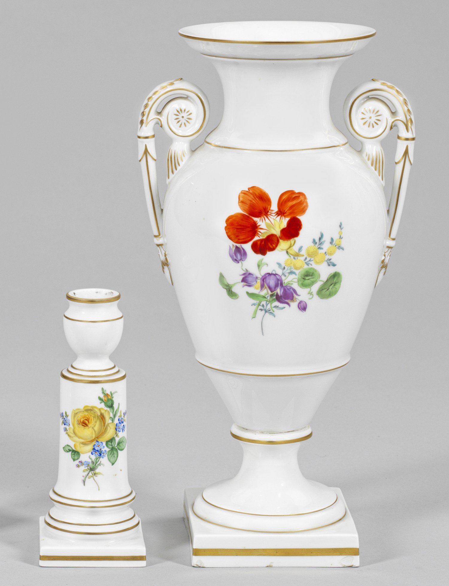 Lot 2692: Amphorenvase und Kerzenleuchter mit Dekor "Deutsche Blume"