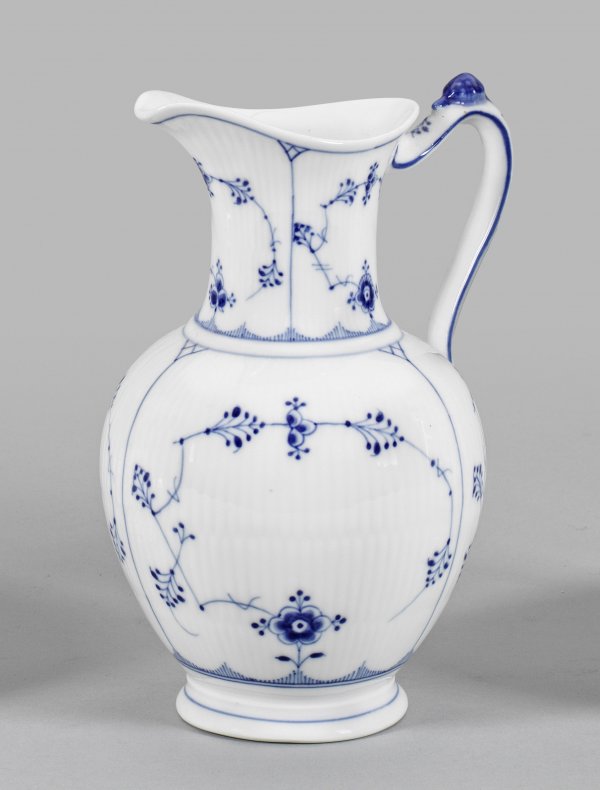An early 20th C. Royal Copenhagen chocolate jug "Musselmalet Blue Fluted plain". Manufacturer's mark.