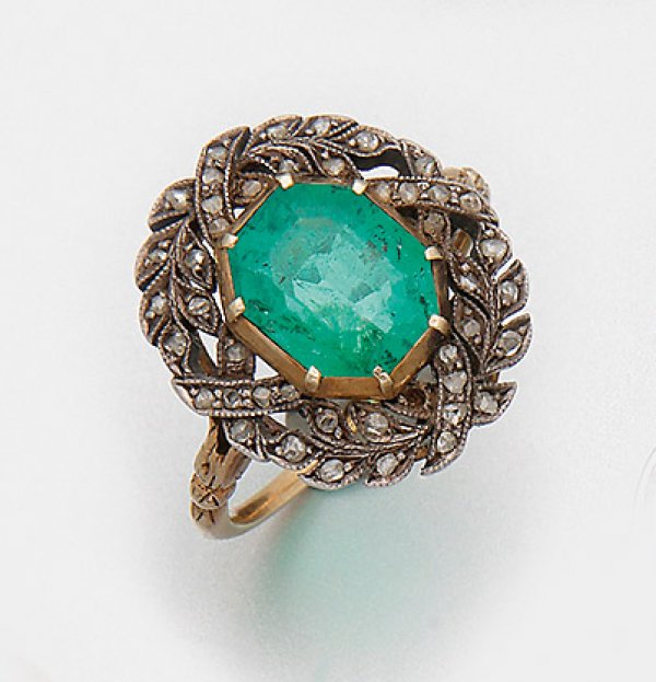 Lot 2797: Jugendstil Smaragd-Diamantring