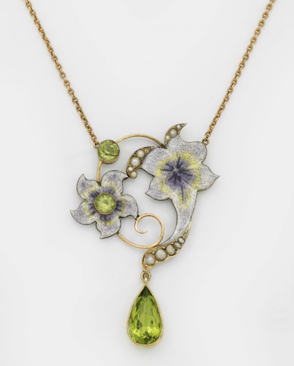 Lot 2801: Feines Jugendstil-Collier mit Peridot-Tropfen