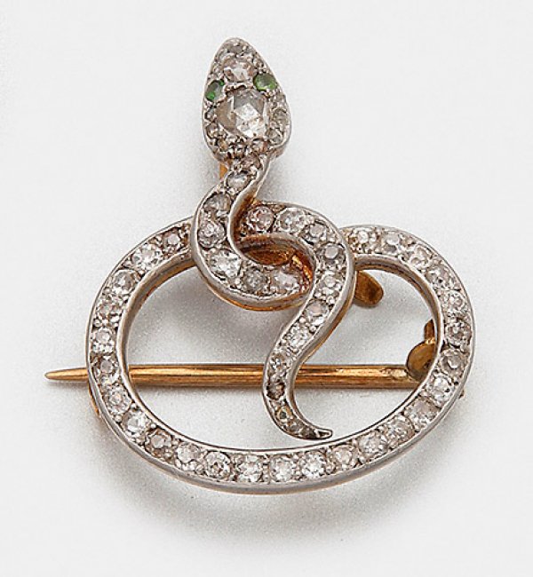Lot 2845: Jugendstil-Schlangenbrosche mit Diamanten