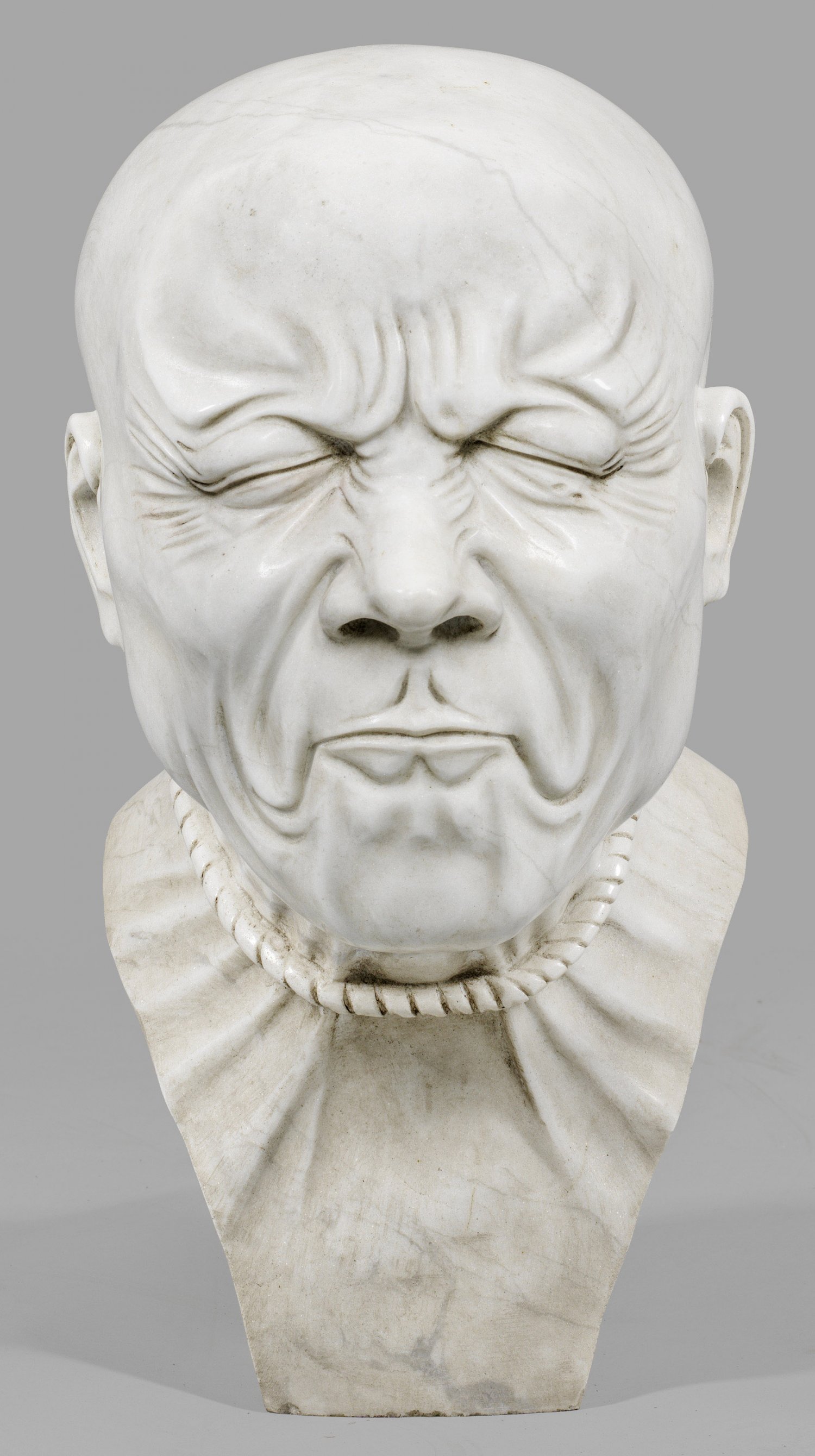 Weißer Marmor. Zeitgenössische Skulptur (Ende 20./Anfang 21. Jh.) nach der in Alabaster ausgeführten Nr. 25 aus der ab 1770 entstandenen, berühmten Serie der "Charakterköpfe", die sich heute im Belvedere in Wien befindet. H. ca. 50 cm.