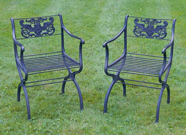 Paar Garten-Armlehnstühle nach einem Entwurf von Karl Friedrich Schinkel
