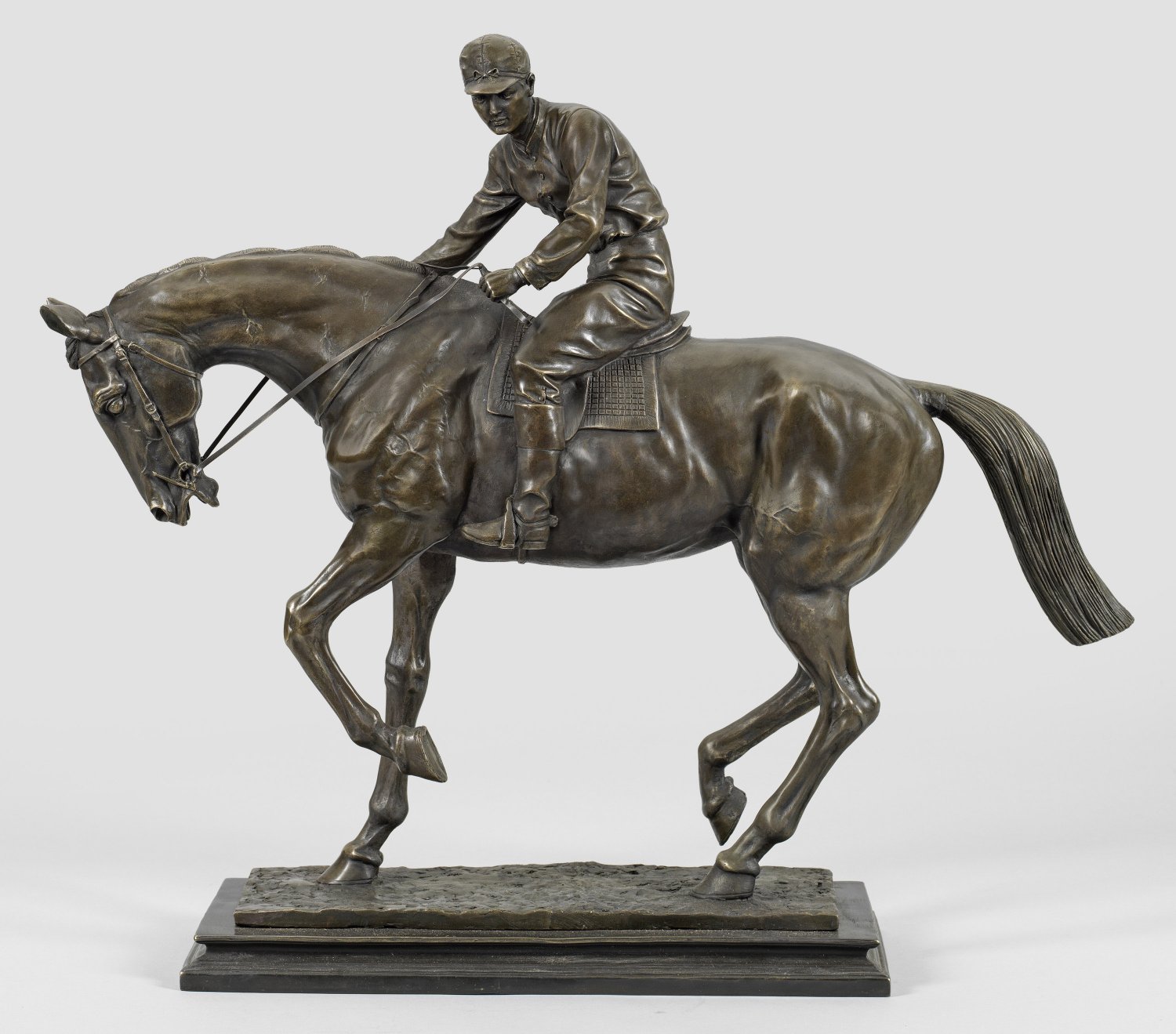 Bronze, dunkelbraun patiniert. Künstler-Bez.; Posthumer, zeitgenössischer Guss (Ende 20./Anfang 21. Jh.) nach der 1879 im Pariser Salon ausgestellten Skulptur, die in naturalistischer, genau studierter und sehr lebendiger Weise den Charakter und die Kraft des Pferdes widergibt. Bonheur gilt als einer der bedeutendsten französischen Tierbildhauer des 19. Jhs.; H. 63 cm.