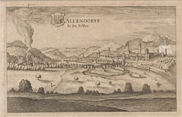 Copper engraving on paper with a view of Bad Sooden-Allendorf published ca. 1646-1655.