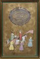 Four Indian miniature gouache paintings with hunting scenes. Stamped.