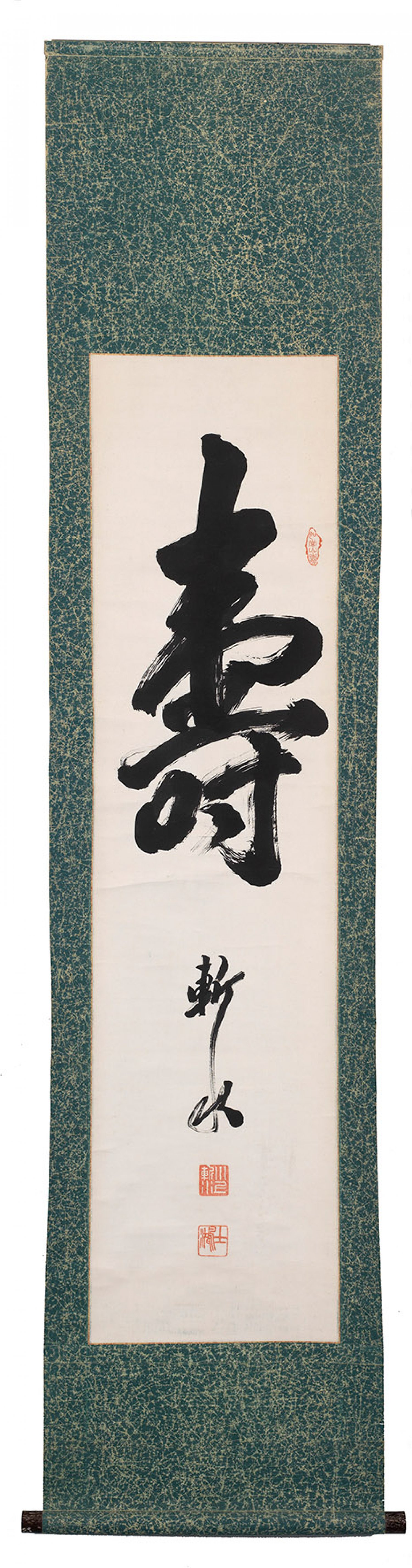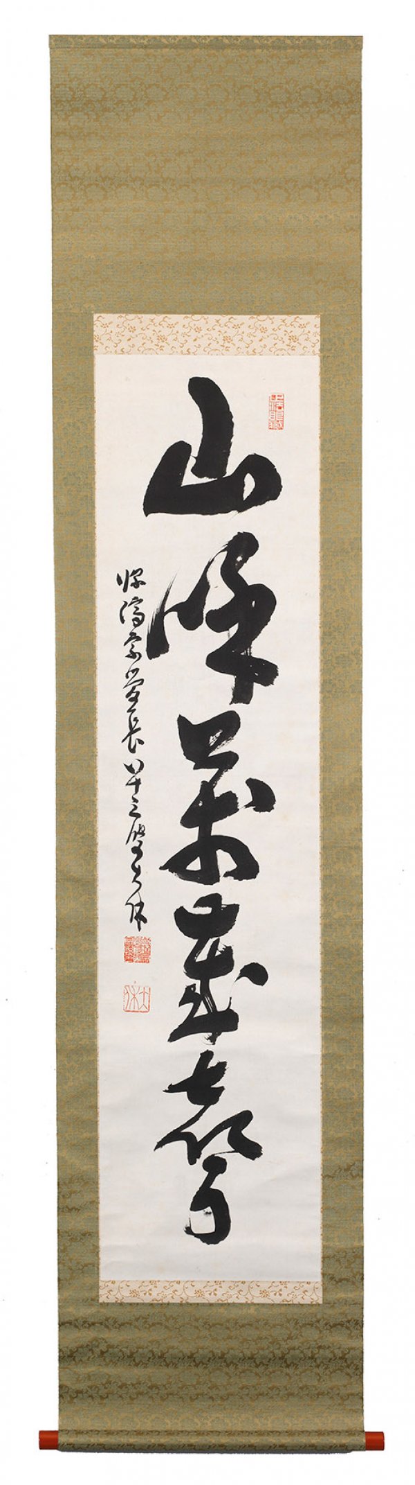 Zwei chinesische Rollbilder Chinesische Kalligraphien als schwarze Tuschmalerei auf weiß laviertem Papier. Ober- und unterhalb rote Siegel-Sign. L. 184 cm x 47 cm.