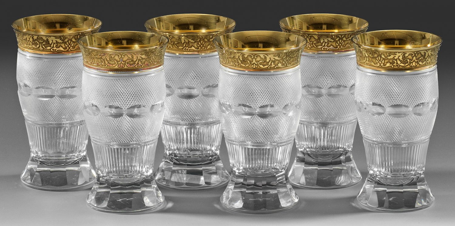 A set of six Moser "Splendid" water glasses. Acid factory stamp.