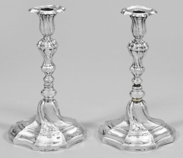 A pair of German silver candlesticks Friedrich Wilhelm von Bestenbostell (master since 1828). Minor damaged, restored. Standard mark 12 lot. MasterŽs mark.