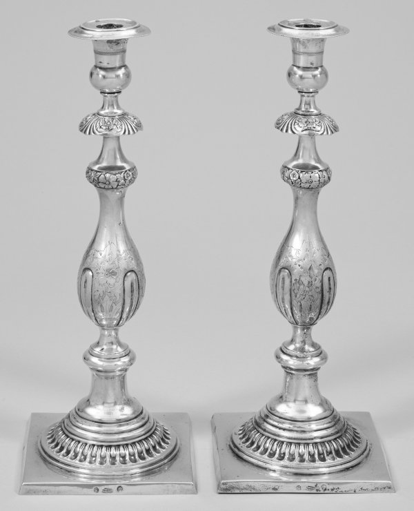 A pair of large Wroclaw Biedermeier candlesticks. Minor age-related signs of use. Assay and masterŽs mark, date letter.