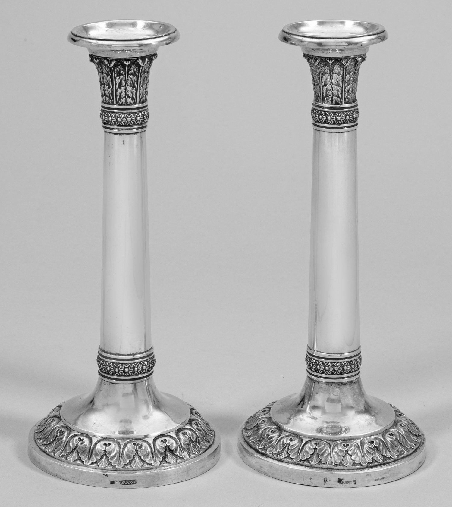 A pair of Koenigsberg Empire silver candlesticks by Eduard Müller (active since 1836). Standard mark 13 lot, makerŽs mark.