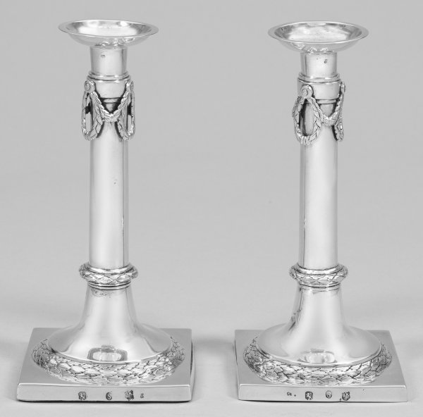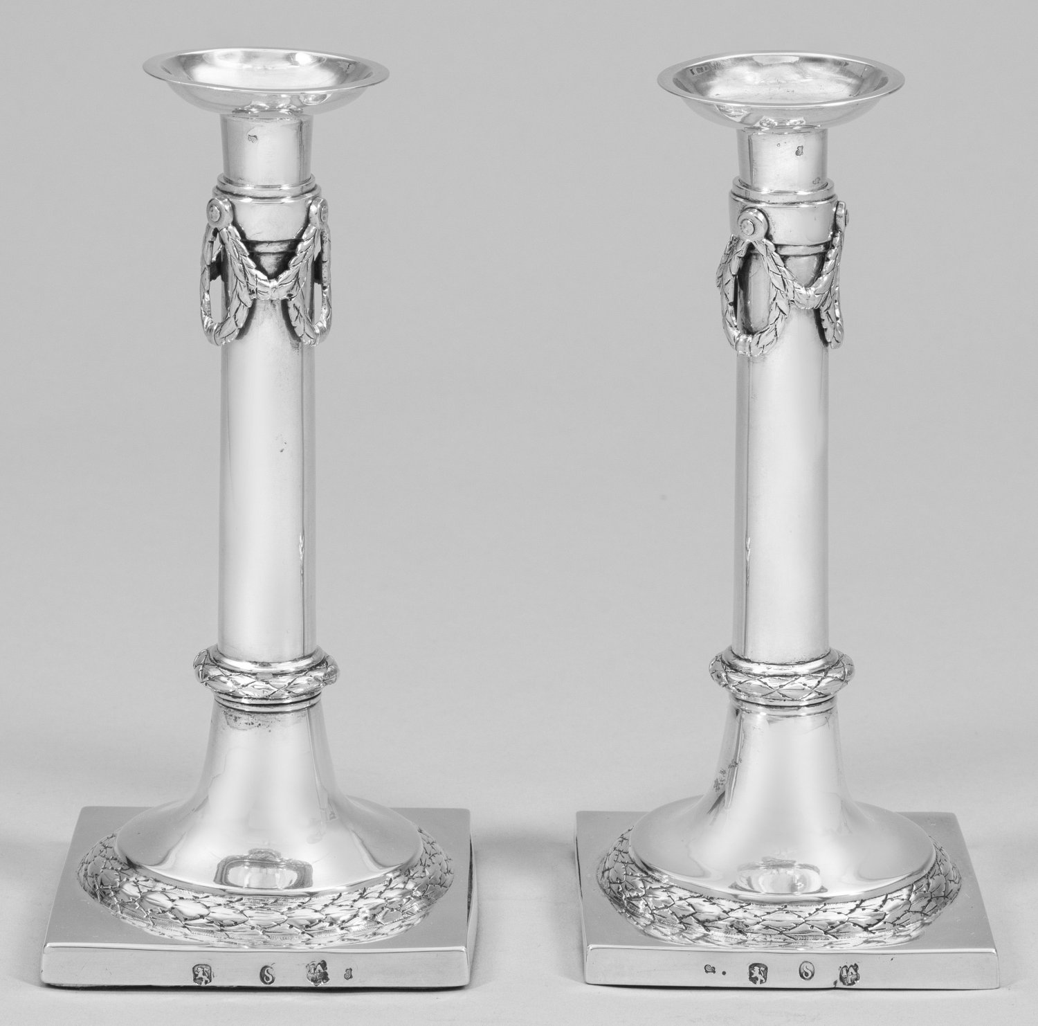 A pair of Brunswick Empire silver candlesticks by Johan Alhard Jaster (master since 1763). Assay and masterŽs mark. Date letter.