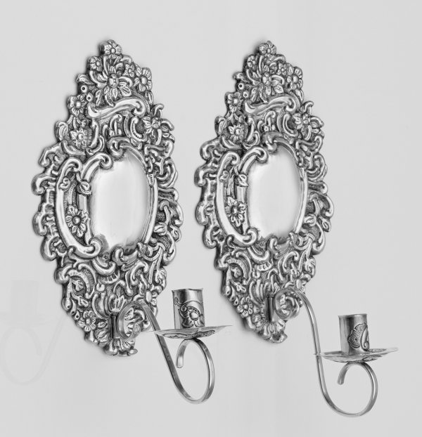 A pair of Gdansk Baroque one-light silver sconces by Emmanuel I Ellerholtz (master since 1758). Assay, assay masterŽs and masterŽs mark, Prussian tax mark.