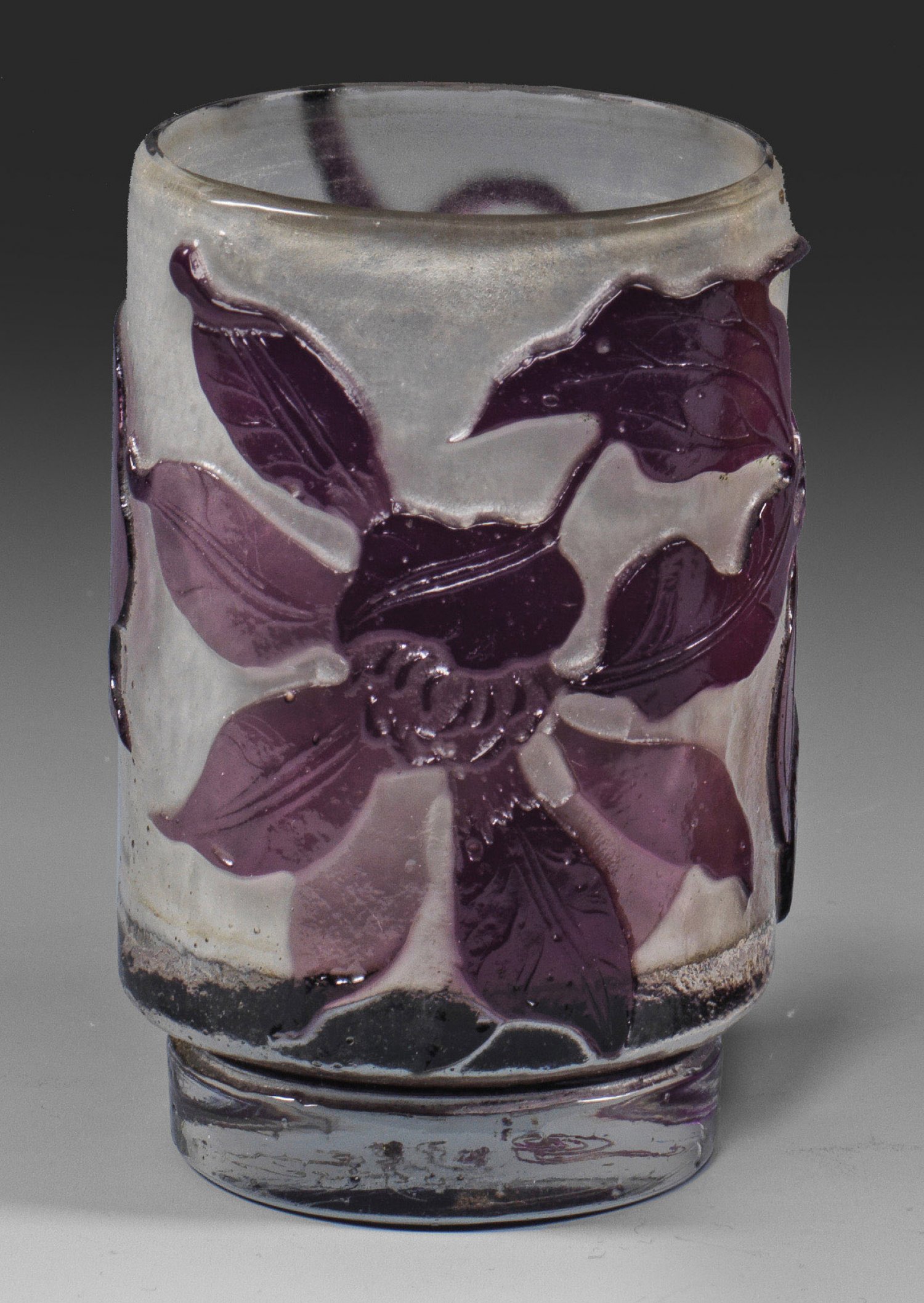 A French Emile Gallé cameo glass with acid-etched and polished clematis decoration. Signed.