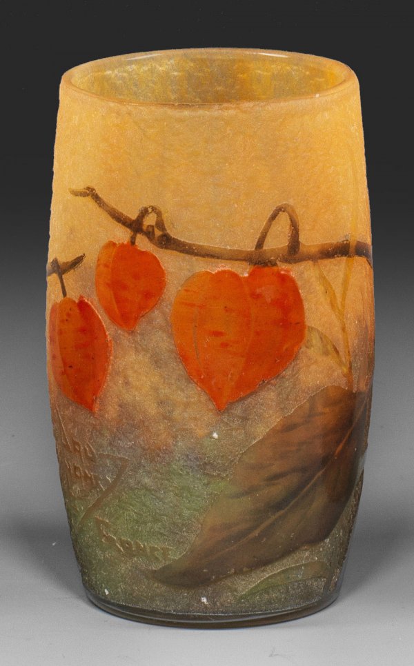 Lot 477: Kleine Bechervase mit Lampionblumendekor von Daum Frères