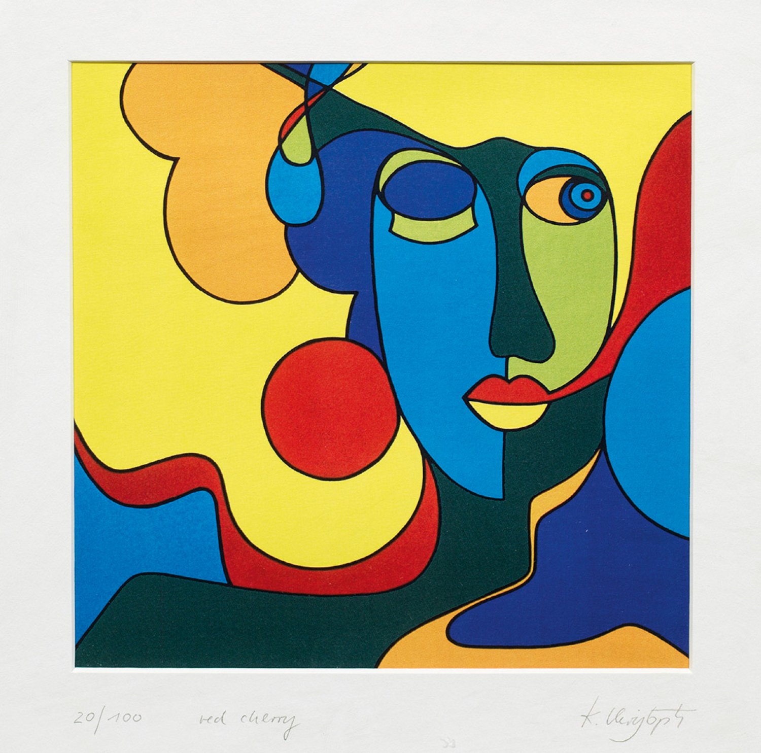 Farboffsetlithographie/Lwd.; Sign., betitelt und nummeriert 20/100. 20,5 cm x 20,5 cm (Passepartoutausschnitt). Rahmen.