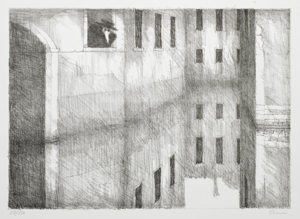Lithograph on incisioni laid paper, 2001. Hand-signed and numbered 77/120.