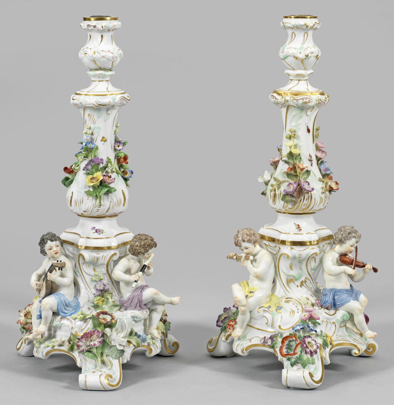 Lot 870: Paar Tafelleuchter mit musizierenden Putten