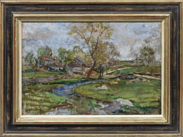 Impressionistische, mit virtuos lockerem Duktus gemalte Studie der bedeutenden schwedischen Malerin, die 1867 - 1874 an der Kunstakademie in Stockholm studierte. 1874 - 1883 in Paris ansässig, besuchte Nordgren die Académie Julian. 1876, 1889 und 1904 beschickte sie die Weltausstellungen in Philadelphia, Paris und St. Louis. Nach einem London-Aufenthalt (1885 - 1899) lebte sie in Schweden zunächst in Göteborg, ab 1908 in Drottningholm, ab 1909 in Stockholm und ab 1913 in Skara. Öl/Malkarton. L. u. sign.; L. u. sign.; Verso von fremder Hand bez.; 30 cm x 45 cm.