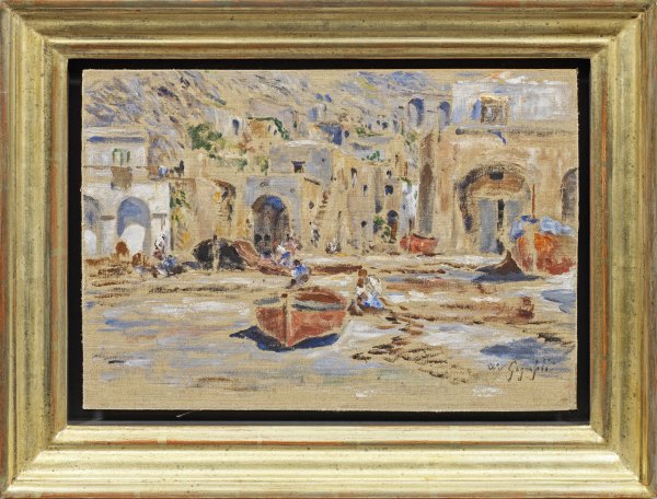 Oil on canvas, laid down or cardboard or panel. Signed.
