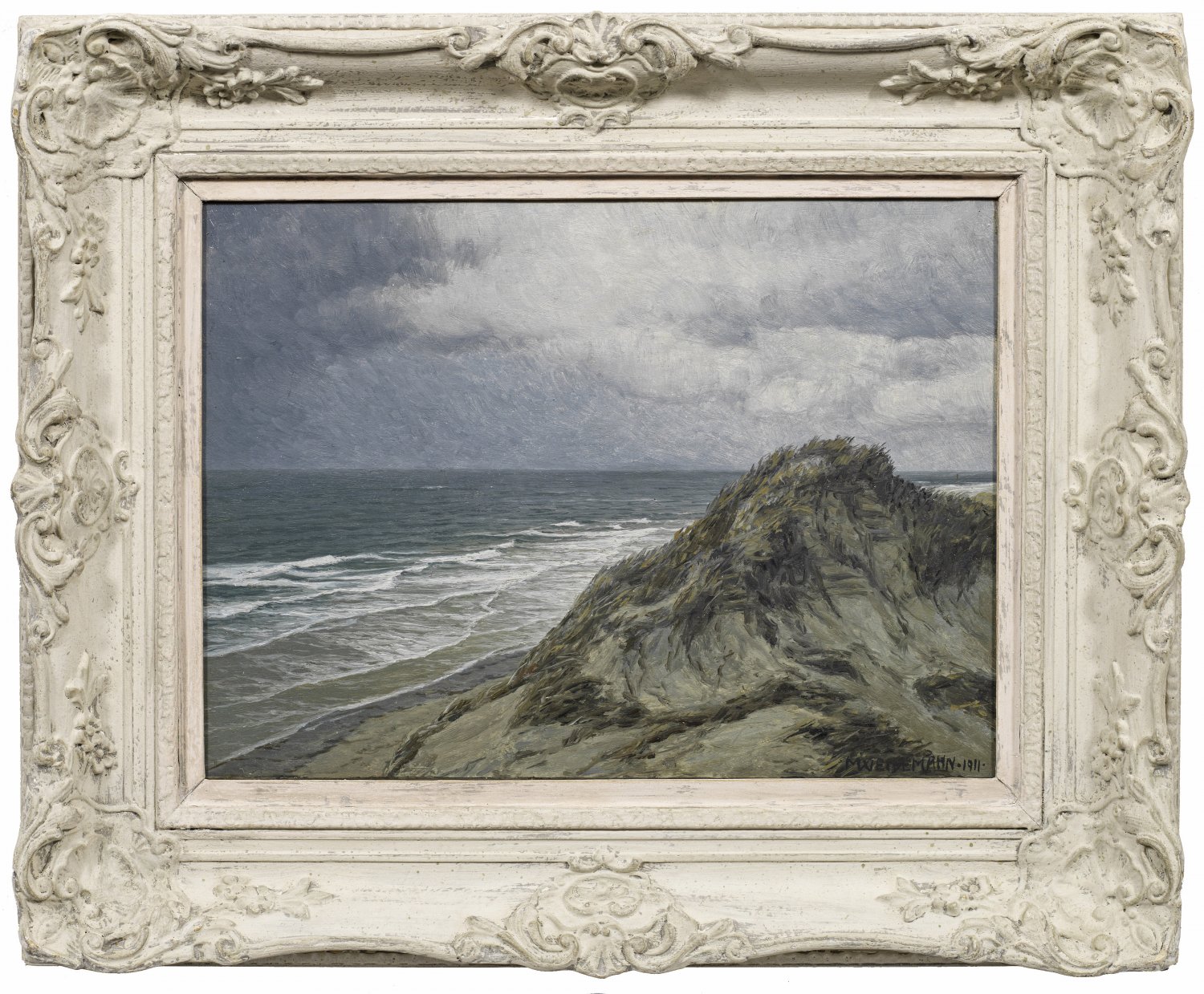 Frühes Werk Weidemanns, der ab 1908 für mehrere Jahre auf Amrum lebte und 1926 in Keitum auf Sylt ansässig wurde. Werke des Künstlers befinden sich in zahlreichen norddeutschen Museen, u. a. in Hamburg, Husum und Flensburg. Öl/Malkarton. R. u. sign. u. dat. 1911. Verso auf altem (originalem) Etikett betitelt sowie mit Nr. "2" bez.; 28 cm x 38 cm. Rahmen.