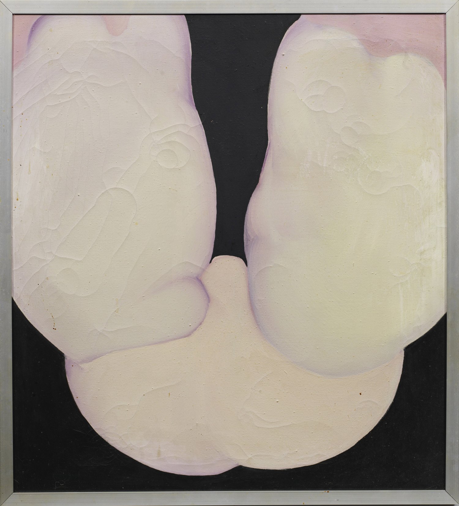Frühe Arbeit Haeses, der 1958 - 1965 an der Staatl. Akademie der Bildenden Künste in Karlsruhe bei HAP Grieshaber studierte und schon 1963 während seines Studiums den Kunstpreis für Malerei der Stadt Wolfsburg erhielt. Öl/Lwd.; 53,5 cm x 50 cm. Rahmen.