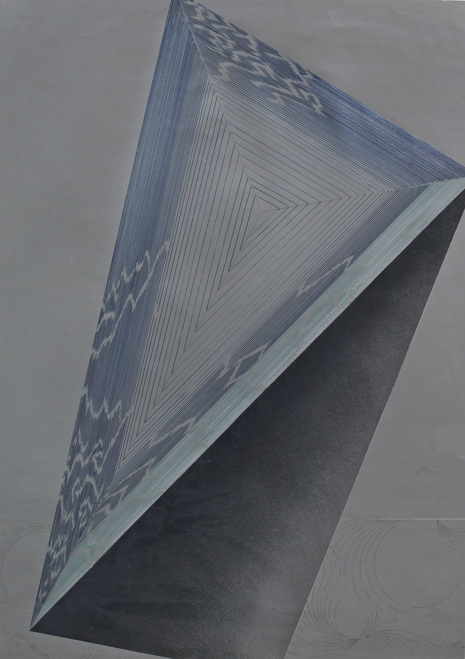 Komposition zu einer Skulptur des Bildhauers. Mischtechnik u. Collage/Papier. R. u. sign. u. dat. (19)70. Verso auf dem Rückenkarton betitelt. 85 cm x 60 cm.