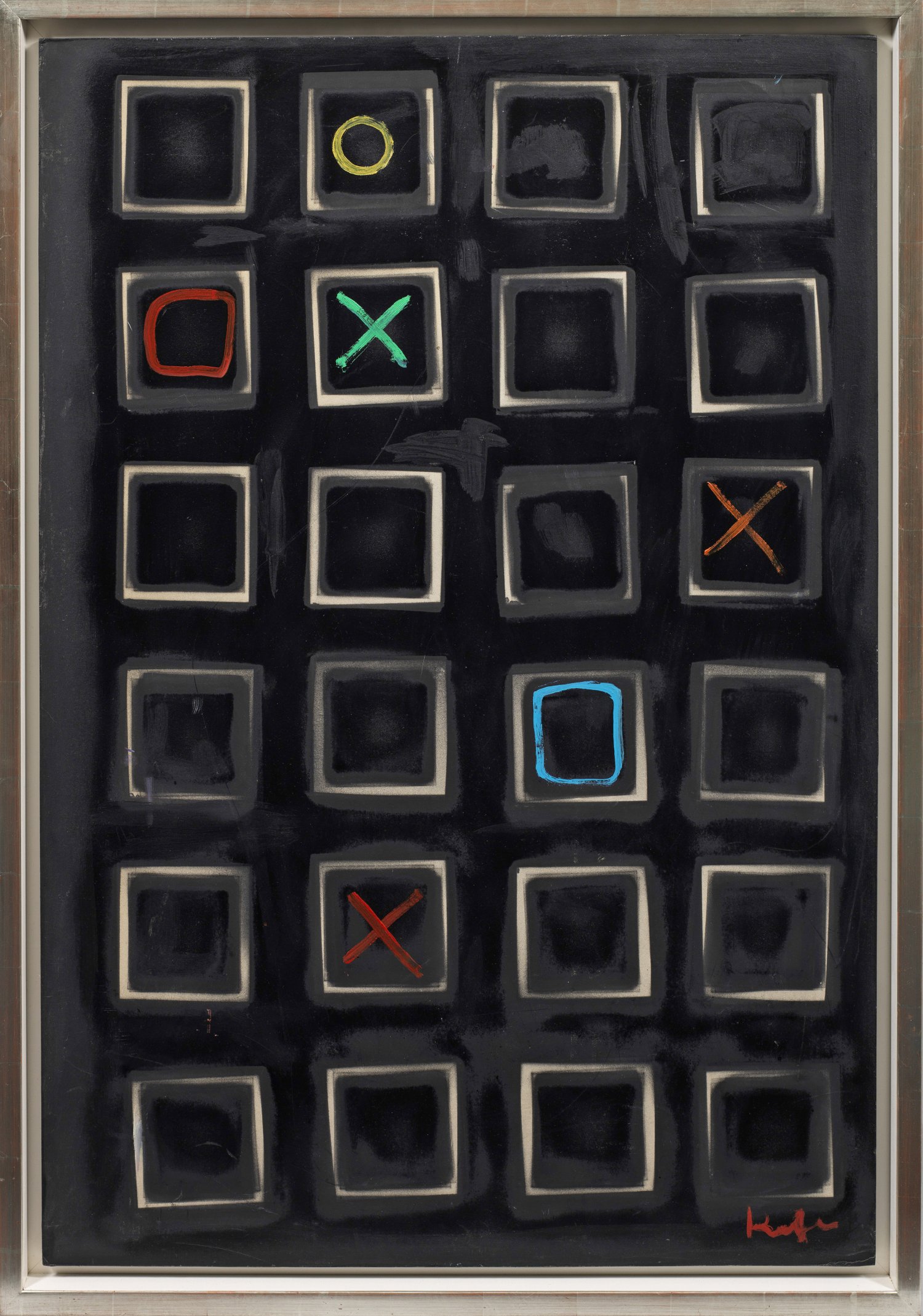 Durch seine abstrakte Darstellung seltenes Werk des bedeutenden österreichischen Malers, der vor allem durch seine expressiven Aktbilder bekannt ist. Kornberger absolvierte ein Studium der Malerei bei Professor Robin Christian Andersen an der Akademie der bildenden Künste in Wien. 1956 schloss er das Studium mit dem Diplom ab und erhielt die Goldene Füger-Medaille. Kornberger setzte sich im Laufe seiner Künstlerkarriere mit den unterschiedlichen Facetten der Klassischen Moderne auseinander, die auch Picassos Spätwerk und die Wiener Kunst des 20. Jhs. von Egon Schiele bis Alfred Hrdlicka umfasst. Öl/Holztafel. R. u. sign.: 99 cm x 70 cm. Rahmen.