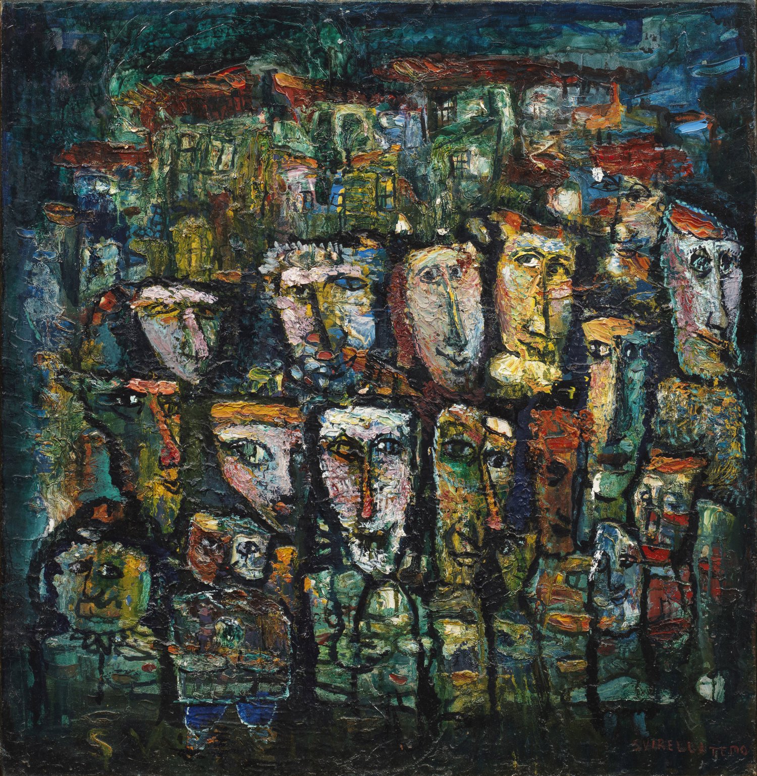 Neoexpressionistische, in Motiv und Stil charakteristische Darstellung mit reliefartigem, pastosem Farbauftrag. Svirely verbrachte seine Kindheit im Dorf Svir in Westgeorgien, studierte an der Kunstschule in Tskhinvali und an der Kunstakademie in Tiflis. Ab 1993 lebte und arbeitete der Künstler, der sich gleichermaßen Georgien und der Ukraine verbunden fühlte, in Kiew. Öl/Lwd.; R. u. sign.; Verso bez., dat. 1998 u. Georgisch betitelt. 70 cm x 70 cm. Atelierleiste.