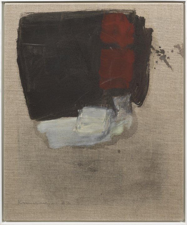 Assoziative Komposition Krawagnas, der vergleichbar mit Julius Bissier in seinen der Abstraktion zugewandten Arbeiten oft in sparsamer Weise kalligraphische bzw. zeichenhafte und formelhafte Elemente einsetzt, um das innerlich oder äußerlich Gesehene zum Ausdruck zu bringen. Krawagna studierte 1953 - 1957 zunächst an der Kunstschule in Linz, danach bis 1961 an der Akademie in Wien und 1963/64 an der École des Beaux-Arts in Paris. Öl/Lwd.; L. u. sign. u. dat. (20)07. 65 cm x 54 cm.