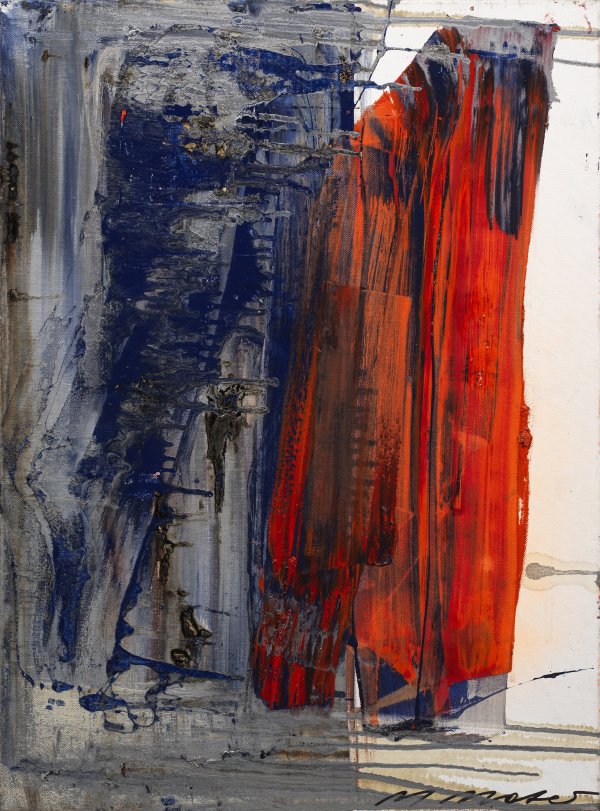 Abstrakte Komposition mit großen Flächen in Rot, Blau und Silber sowie teilw. nach rechts verlaufenden Farbspuren aus dem Jahr 2013. Diese entfaltet durch ihre Schichtungen eine dreidimensionale Wirkung und bringt durch die silberne, metallisch glänzende Farbe zugleich die titelgebende Sinneswahrnehmung einer Spiegelung zum Ausdruck. Moser studierte 1968 - 1973 an der Wiener Akademie und eroberte sich seitdem durch eine Reihe von Auszeichnungen und zahlreiche Einzel- und Gruppenausstellungen einen Rang in der deutschen und österreichischen Kunstszene. Ihr Oeuvre steht in der Tradition des Informel und Abstrakten Expressionismus, zugleich spiegeln Arbeiten wie diese in abstrakter Form eigene Seheindrücke aus der väterlichen Schlossereiwerkstatt wider, mit denen sie aufwuchs - u. a. schimmerndes Metall und glühendes Feuer. Öl/Lwd.; R. u. sign.; 80 cm x 60 cm. Rahmen.