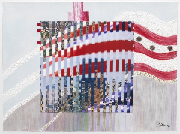 Braun gibt die fragmentierte 5th Avenue und die US-amerikanische Flagge wieder, in die sie 1-Cent Münzen einarbeitete, überdies die Silhouette des berühmten The Sherry-Netherland-Hotels von 1927. Neben Werkzyklen von Fotoeditionen befasst sich Braun mit Fotocollagen in Verbindung mit Acrylmalerei, welche die räumlich-künstlerischen Grenzen der Fotografie erweitern. Mischtechnik mit Collage/Karton, 2010: Sign. u. nummeriert 3/10. 42 cm x 56 cm.